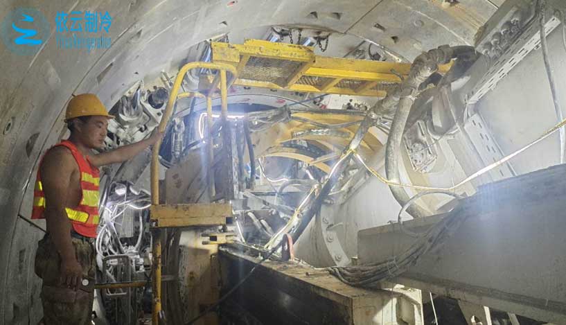 隧道用水冷螺桿式冷水機(jī)是用來對地鐵隧道進(jìn)行降溫通風(fēng)的設(shè)備,由于工人都在地下隧道這種*其封閉的環(huán)境下工作,空氣不流通,熱量散發(fā)不出去,所以需要冰水機(jī)對隧道施工現(xiàn)場通風(fēng)降溫,通常會與風(fēng)柜配合使用,從而保證隧道施工現(xiàn)場的溫度及濕度,使得施工工人能正常的工作。依云制冷專用為您提供地鐵隧道施工降溫用冷水機(jī)選型方案。