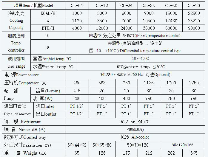 應用于機床切削刀具冷卻液的冷卻:刀具刃部溫度的控制將直接影響刀具的使用壽命及產品質量.;數控機床、座標鏜床、磨床、加工中心、組合機床以及各類精密機床主軸潤滑和液壓系統*動媒的冷卻,能夠**地控制油溫,有效地減少機床的熱變形,提高機床的加工精度。